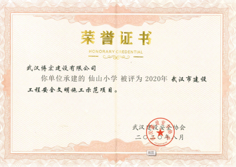 2020年上半年武漢市建設(shè)工程安全文明施工示范項(xiàng)目(仙山小學(xué))