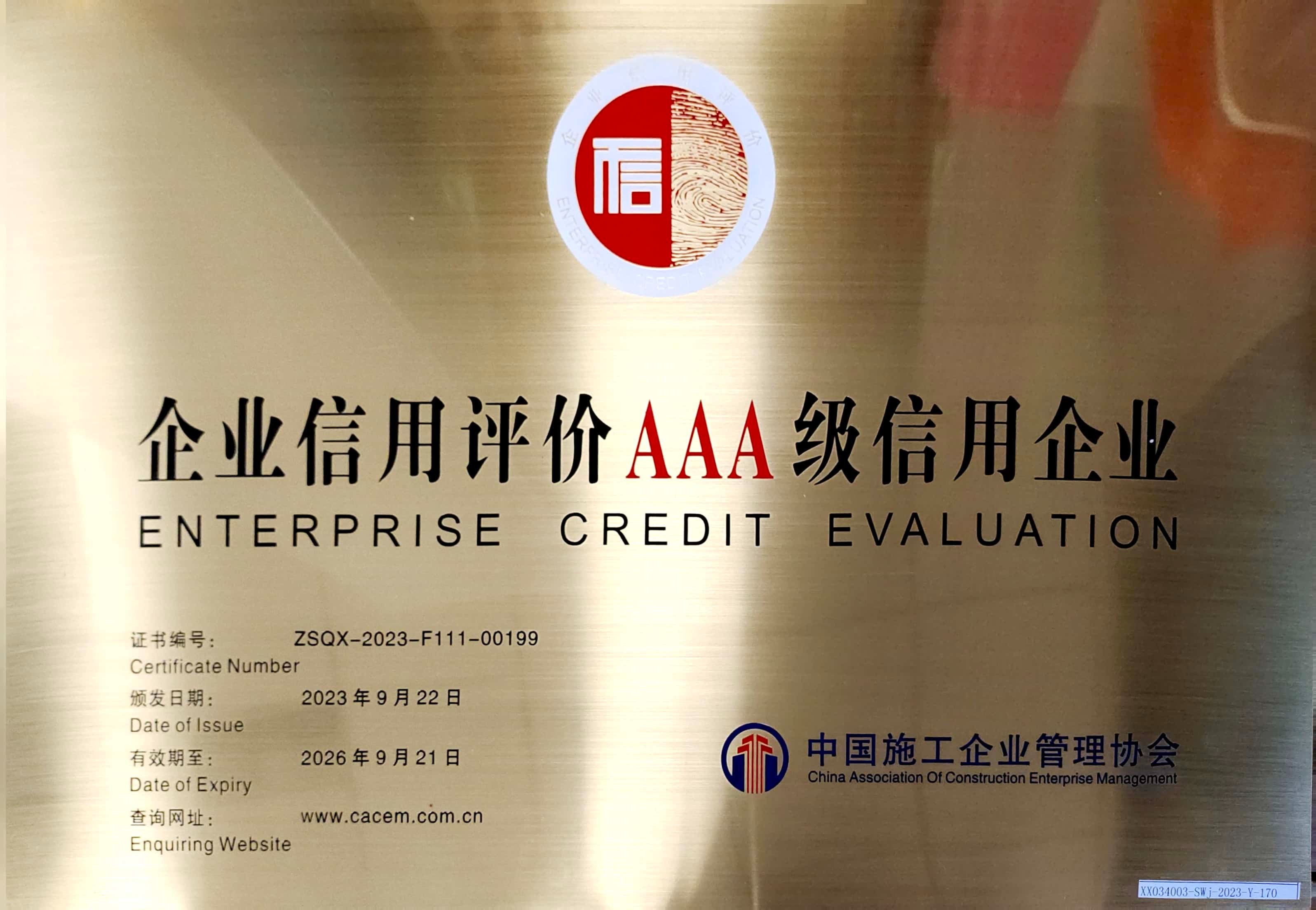 2023-2026年 企業(yè)信用評(píng)價(jià)AAA級(jí)信用企業(yè)