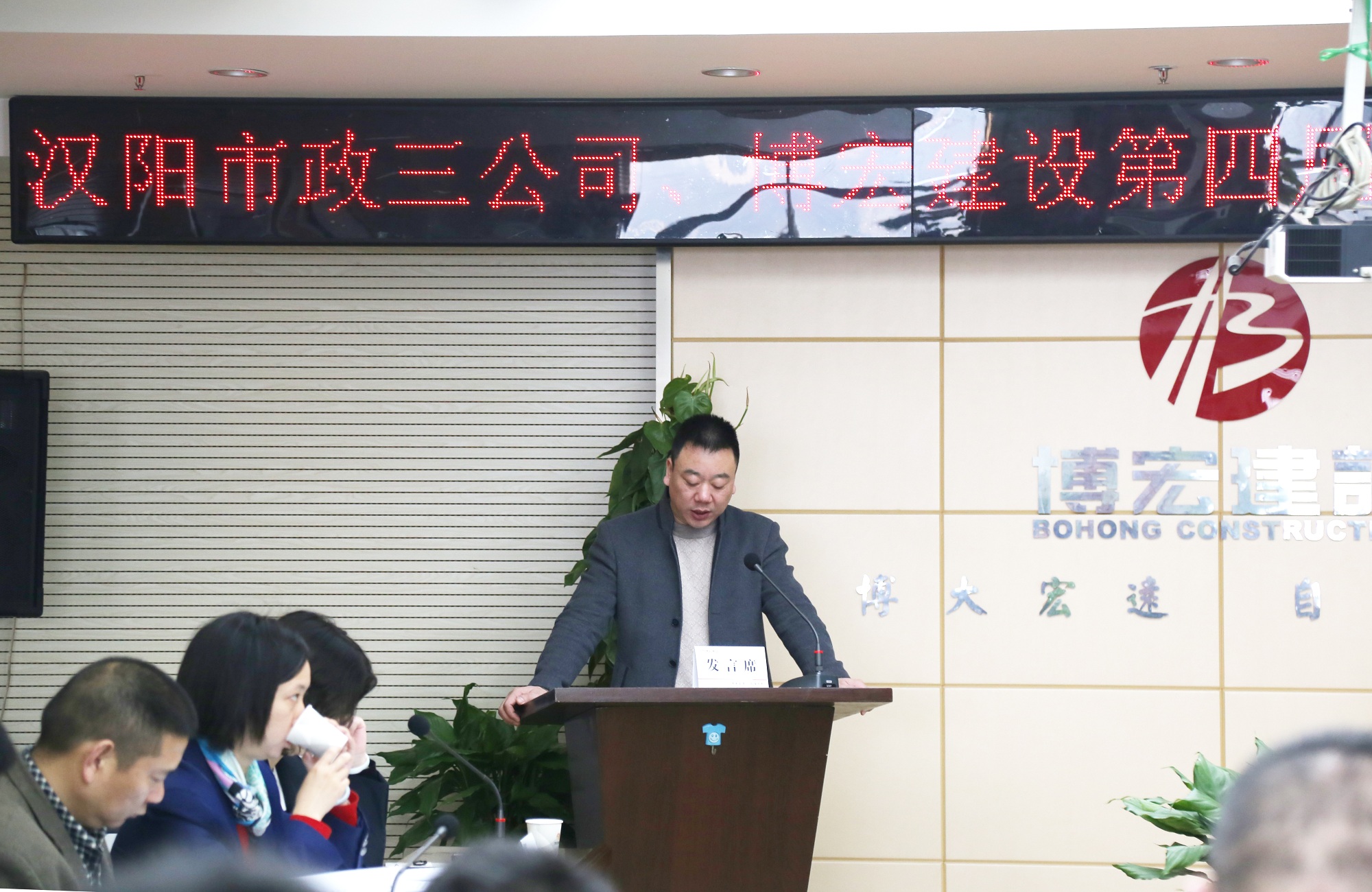 2018年3月23日上午,漢陽市政三公司、博宏建設(shè)第四屆第二次聯(lián)合職工代表大會(huì)在莊嚴(yán)的國歌聲中順利開幕,漢陽市政集團(tuán)公司副總經(jīng)理邢榮斌蒞臨會(huì)議現(xiàn)場,公司領(lǐng)導(dǎo)班子及31名職工代表出席會(huì)議,會(huì)議由工會(huì)主席李俊主持。