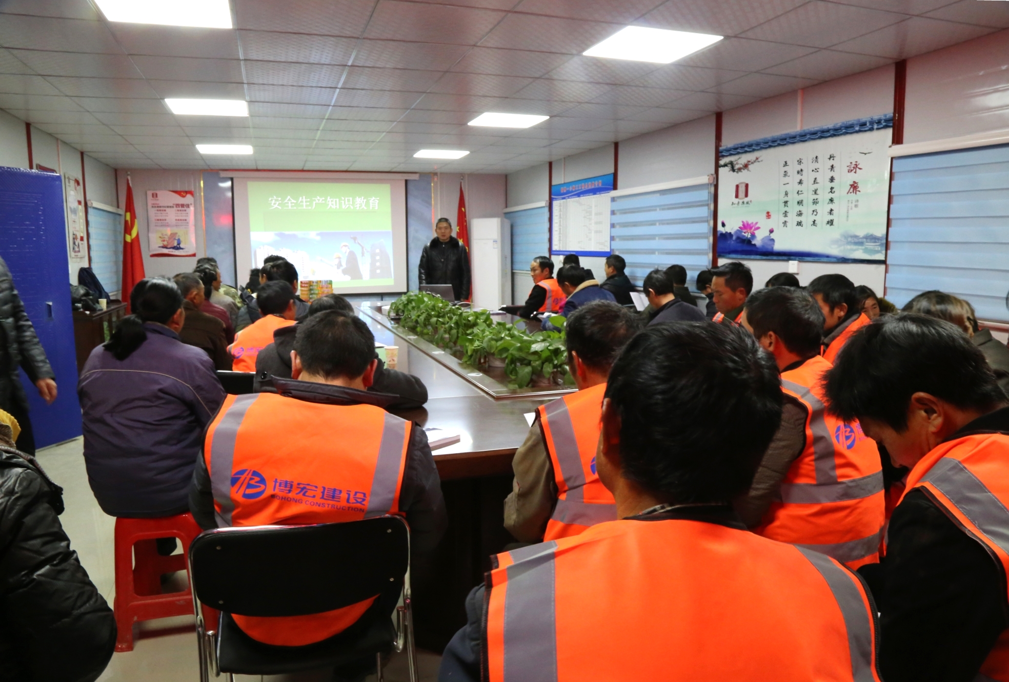 12月11日晚6點(diǎn),正值冬日嚴(yán)寒時(shí)段,武漢市建委、漢陽區(qū)建管站新春“三送”活動(dòng)走進(jìn)武漢博宏建設(shè)有限公司國博一小項(xiàng)目工地,為一線農(nóng)民工兄弟送溫暖、送文化、送法律,漢陽區(qū)建管站站長(zhǎng)李宏、集團(tuán)公司副總經(jīng)理邢榮斌出席此次活動(dòng),項(xiàng)目部及民工兄弟約50余人參與其中。