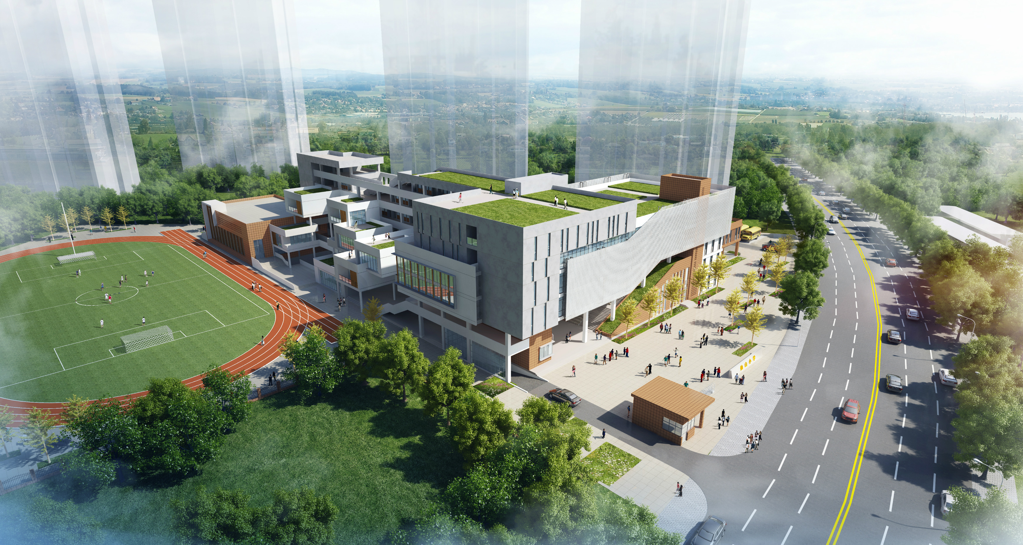 建設(shè)內(nèi)容:綜合教學樓 1 棟、風雨操場及食堂,配套建設(shè)學校大門、道路及停車場、運動場地、區(qū)域給排水管網(wǎng)、電力電信消防、綠化等工程。