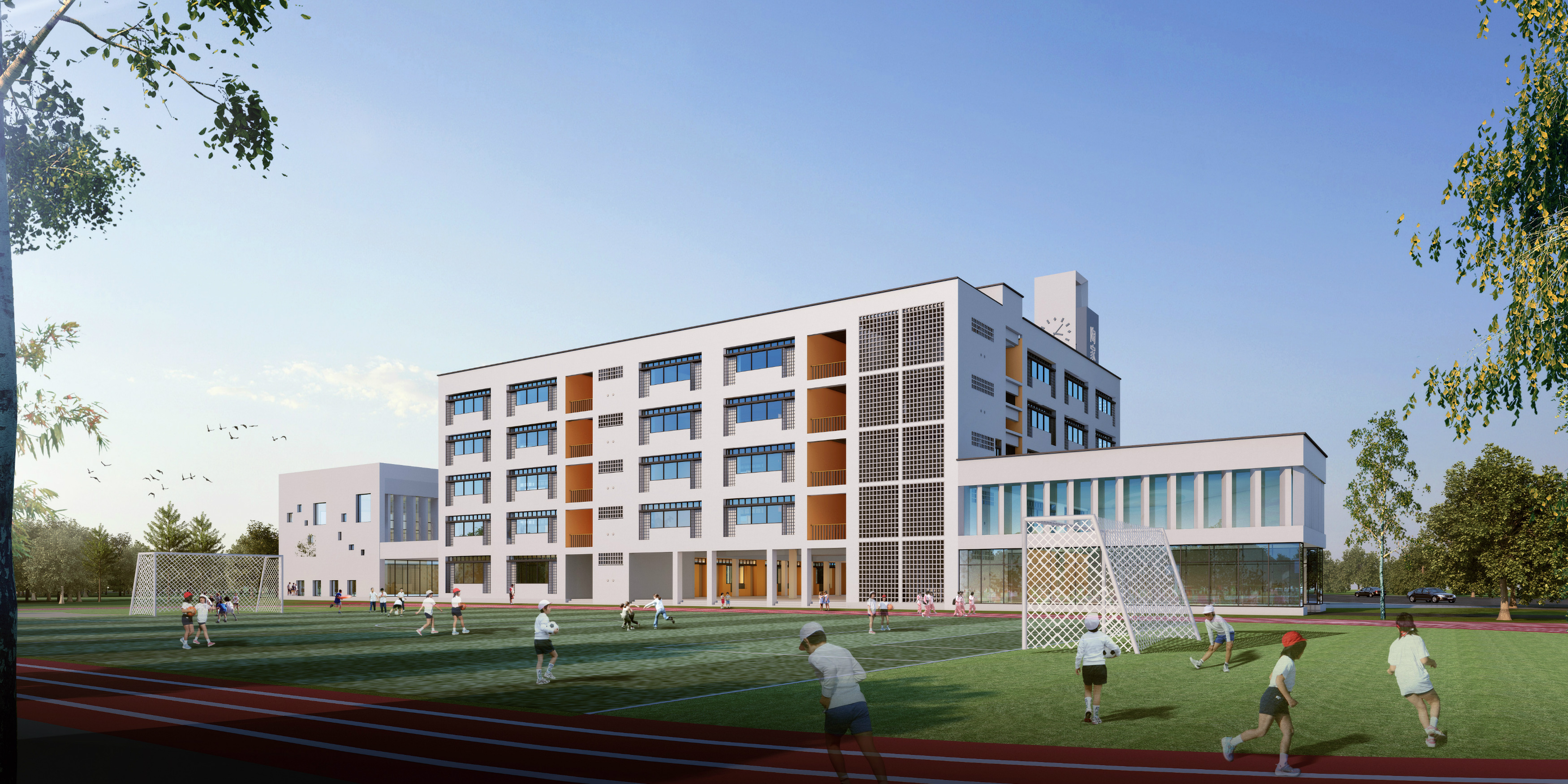 建設(shè)內(nèi)容:六層教學綜合樓 1 棟,配套建設(shè)學校大門、道路及停車場、運動場地(含足球場、籃球場、羽毛球場、器械區(qū)、跑道等)、綠化等工程。
