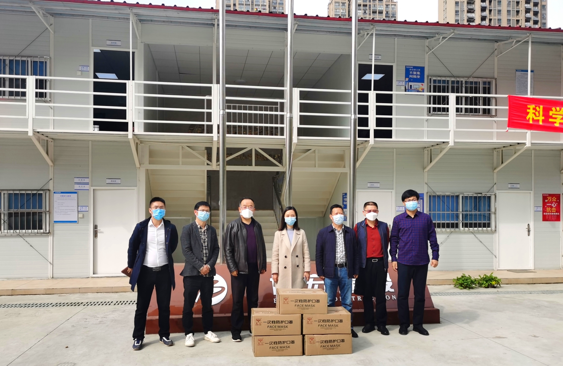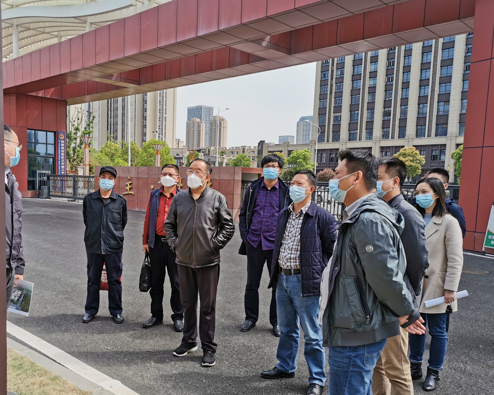 4月14日下午,武漢市建筑業(yè)協(xié)會副會長李淼磊、秘書長李紅青、協(xié)會質(zhì)量管理工作委員會秘書長陳剛結(jié)隊來到武漢博宏建設有限公司龍陽中學、四新中學項目現(xiàn)場,開展復工復產(chǎn)防疫慰問和竣工項目質(zhì)量管理情況調(diào)研,并送來一批一次性醫(yī)用防護口罩。