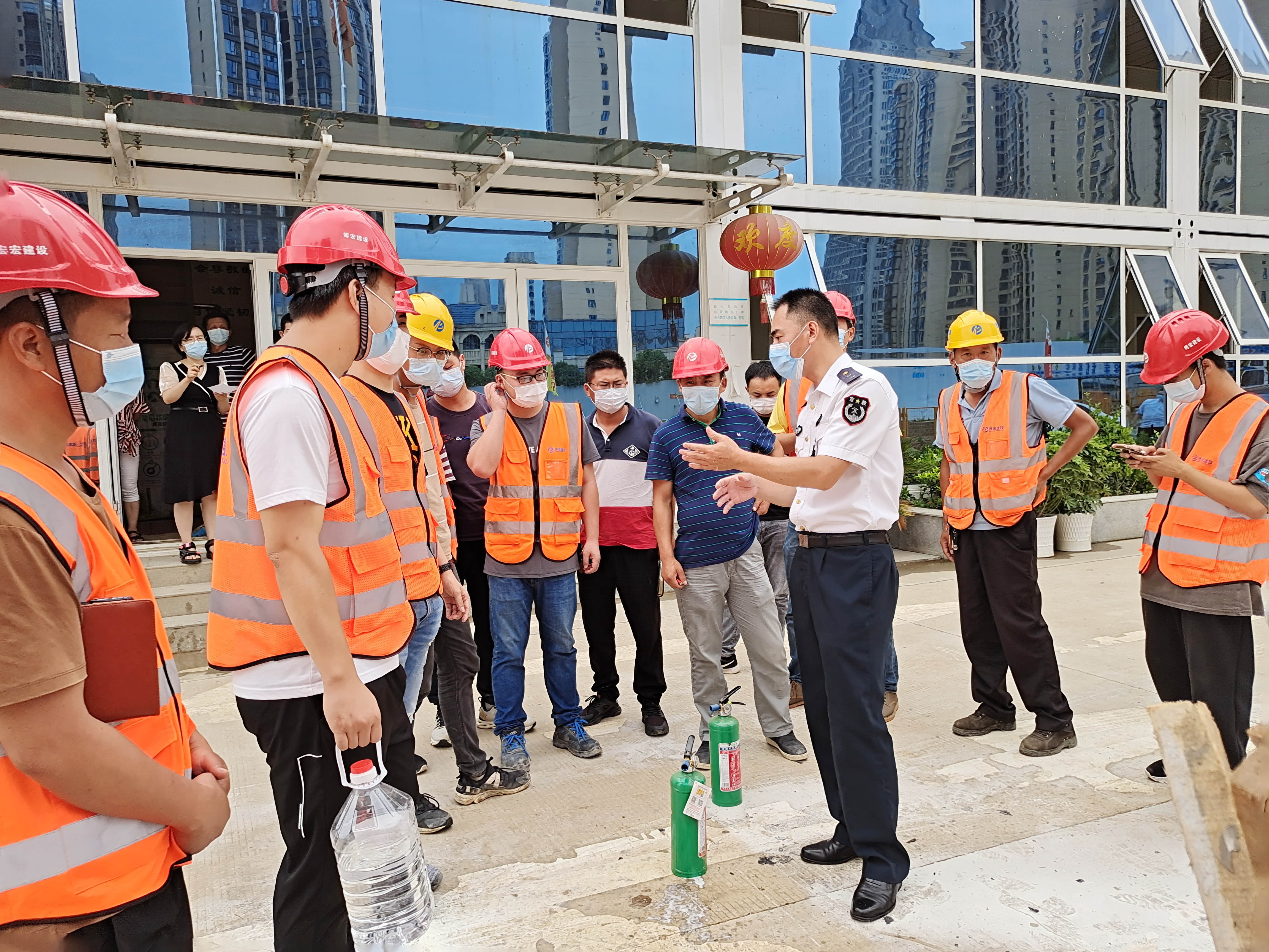 演練中,公司邀請到湖北省楚安防火宣教中心謝小秋教官來到項目現(xiàn)場進(jìn)行了消防安全知識講解。期間,重點介紹了各類滅火器的使用方法和適用場景,并現(xiàn)場進(jìn)行了演示。