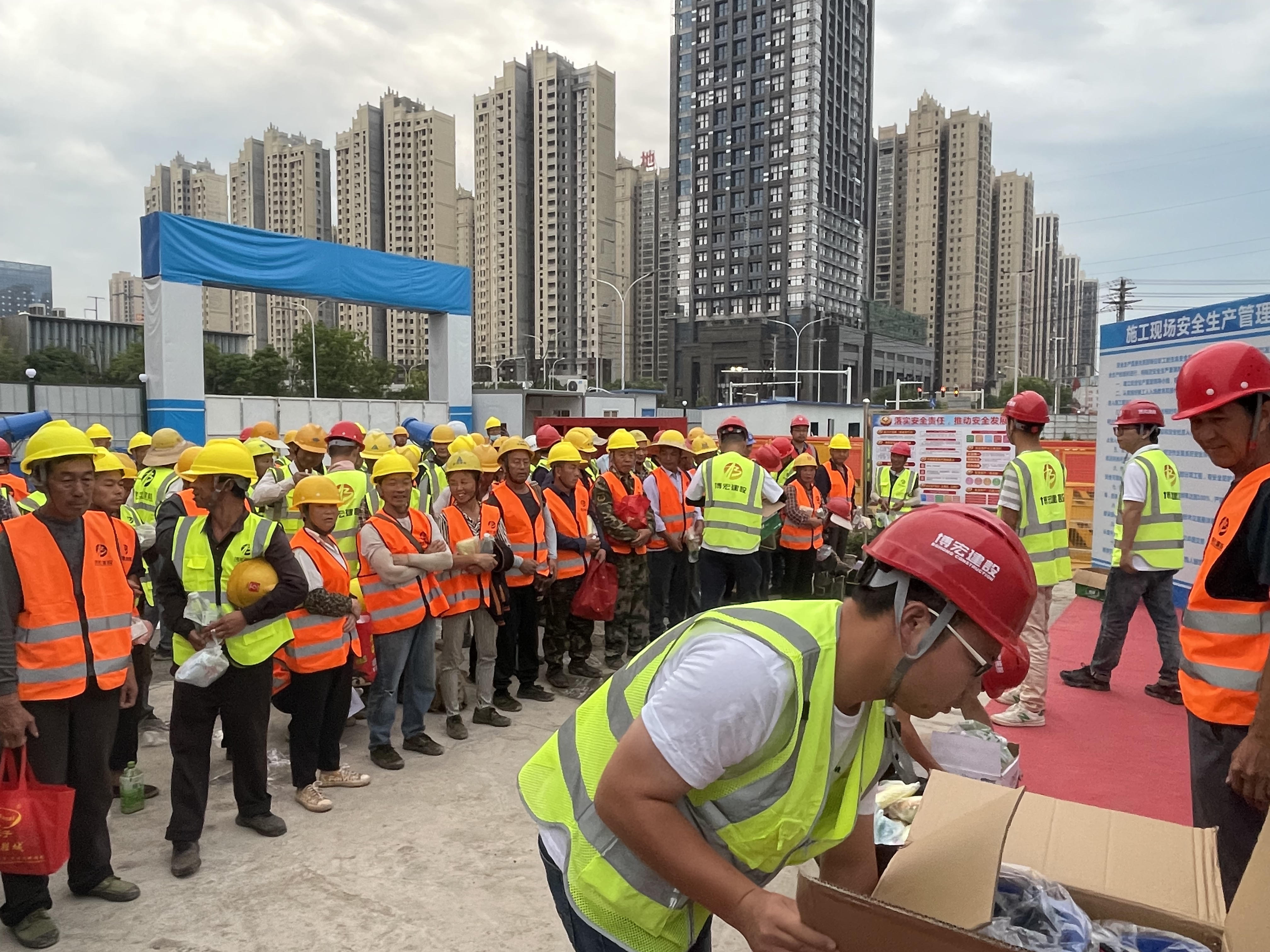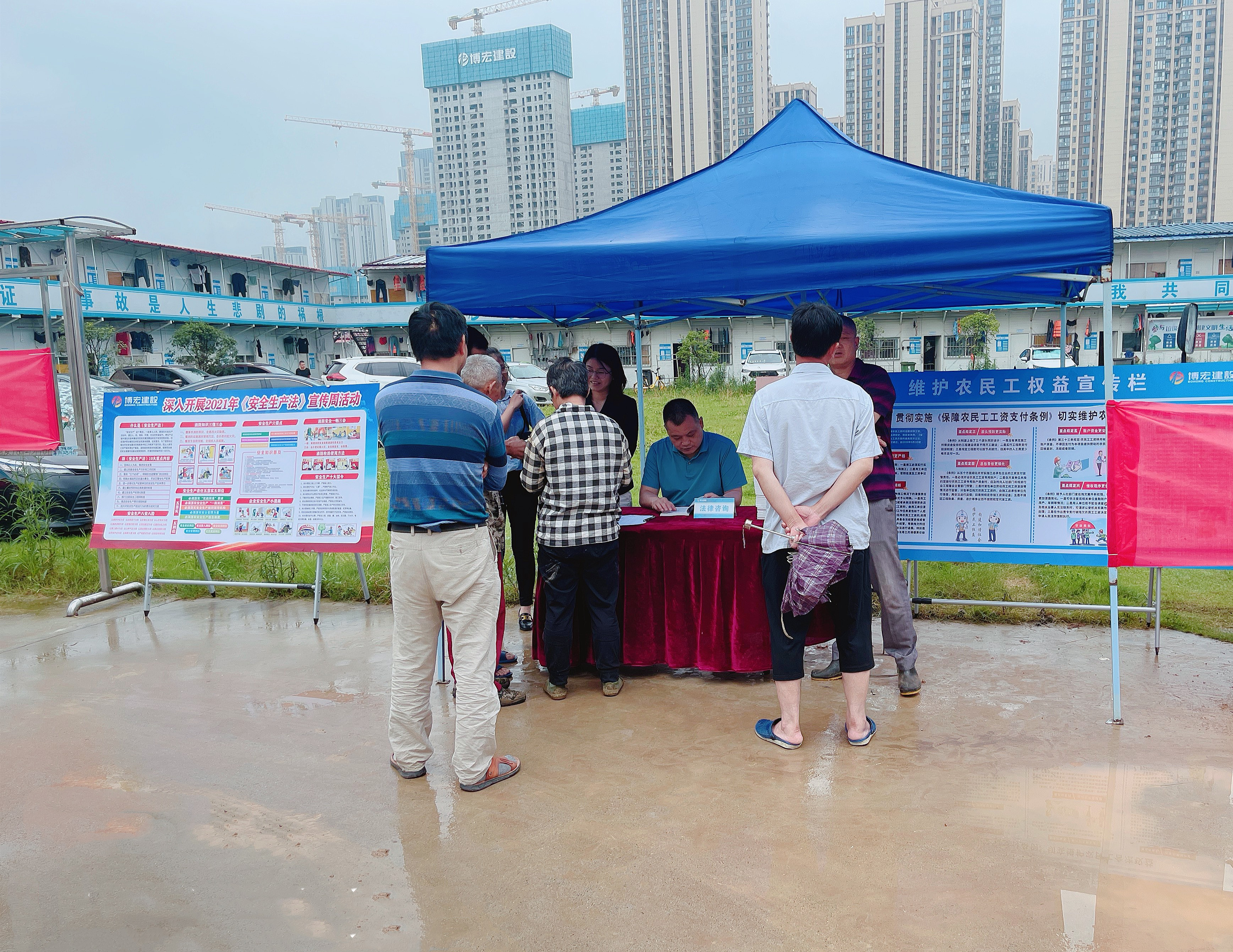 6月19日下午4點(diǎn),“送法進(jìn)工地”普法宣傳活動在漢陽市政大廈項(xiàng)目部舉辦。活動現(xiàn)場通過懸掛橫幅、發(fā)放普法書籍、法律咨詢等形式向在場的農(nóng)民工、項(xiàng)目一線員工宣傳與安全生產(chǎn)、農(nóng)民工權(quán)益保護(hù)相關(guān)的基本知識。
