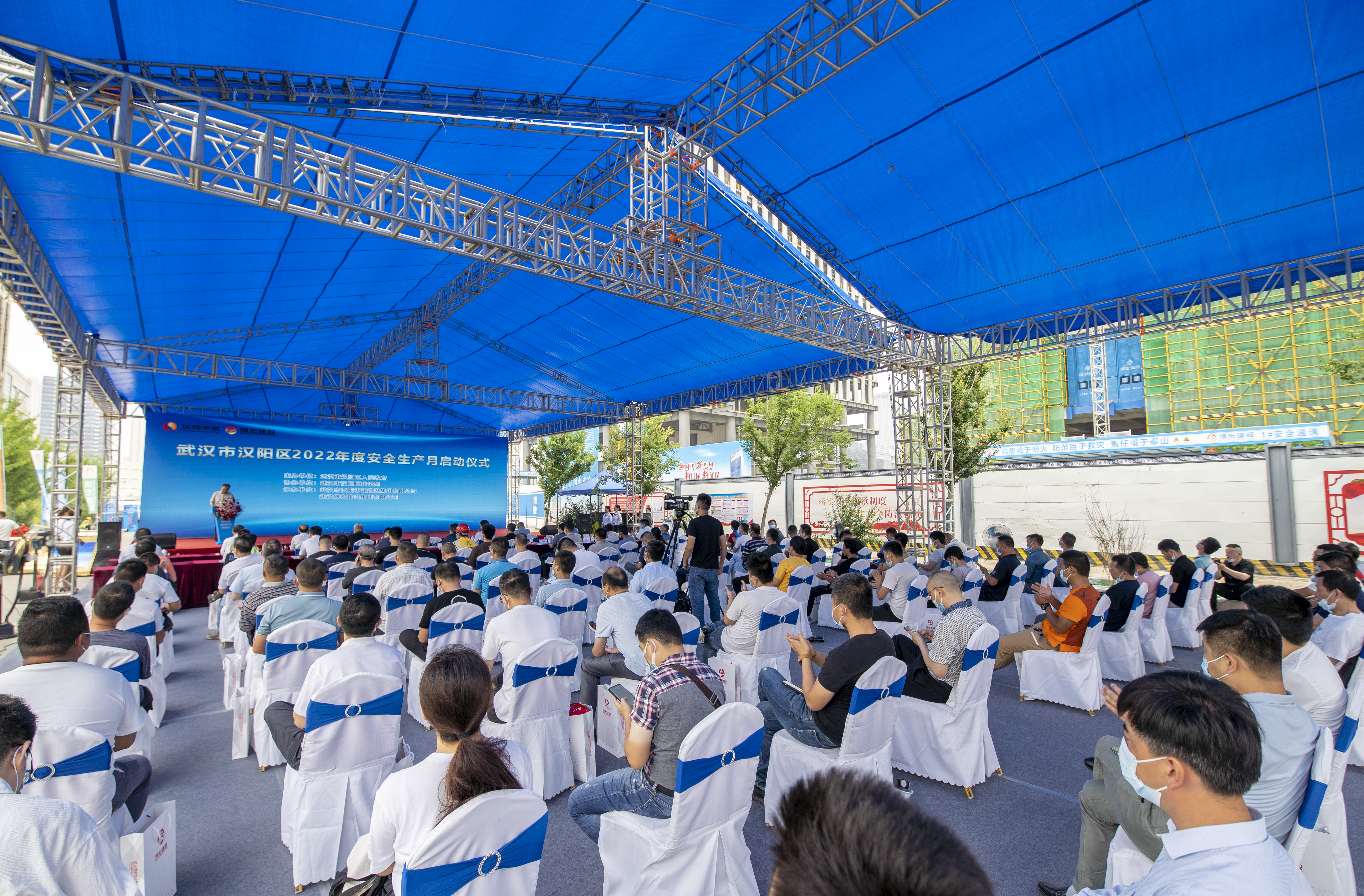 5月30日上午9時(shí),武漢市漢陽(yáng)區(qū)2022年度“安全生產(chǎn)月”啟動(dòng)儀式在博宏建設(shè)集團(tuán)承建的中南科研設(shè)計(jì)中心項(xiàng)目舉行。武漢市城建局副局長(zhǎng)周才志,漢陽(yáng)區(qū)政府副區(qū)長(zhǎng)李津,武漢市城建局質(zhì)安處副處長(zhǎng)宋鈺、安全站副站長(zhǎng)汪仁平,漢陽(yáng)區(qū)建設(shè)局局長(zhǎng)胡紅勝、區(qū)應(yīng)急局局長(zhǎng)李漢光、龍陽(yáng)街主任肖瀟、區(qū)建管站站長(zhǎng)王晟,漢陽(yáng)市政黨委書(shū)記、董事長(zhǎng)嚴(yán)悌文,武漢創(chuàng)設(shè)科技發(fā)展有限公司董事長(zhǎng)周忠義,博宏建設(shè)集團(tuán)黨支部書(shū)記、董事長(zhǎng)、總經(jīng)理鄒勇,中南科研中心項(xiàng)目建設(shè)單位、監(jiān)理單位、參建單位、在建項(xiàng)目代表等參加了活動(dòng)。