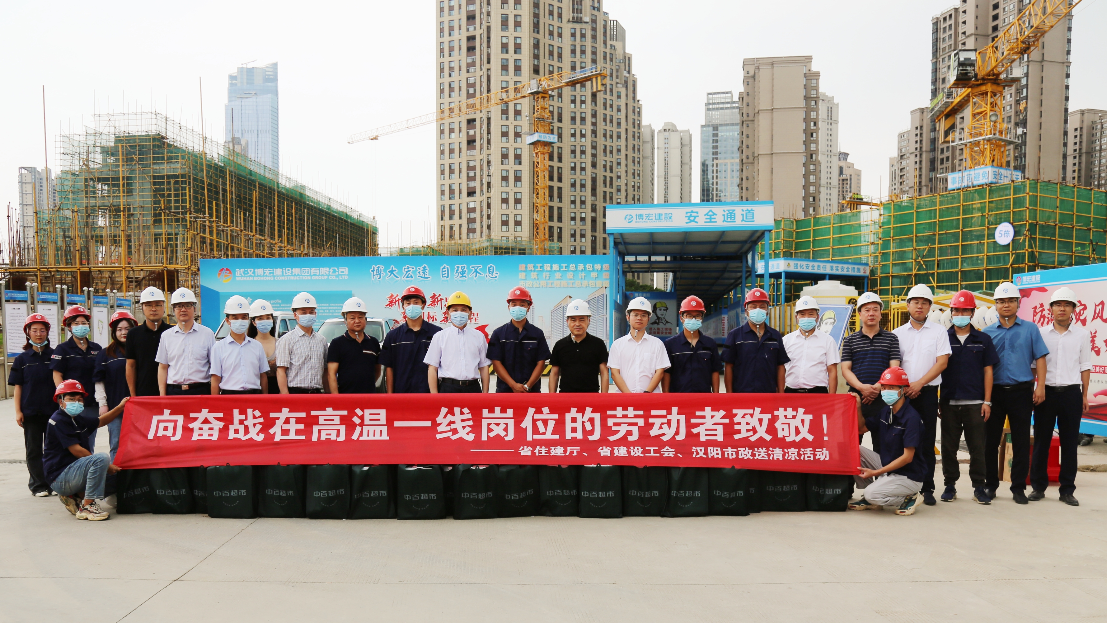 烈日炎炎,酷暑當頭。近日,武漢地區(qū)高溫預警不斷拉響。為確保武漢城市建設(shè)有序進行,全體博宏人堅守崗位、揮灑汗水、不辭辛勞,奮戰(zhàn)在項目一線。7月28日上午10點整,湖北省住建廳黨組成員、副廳長金濤,住房保障處處長阮斌,房地產(chǎn)市場建管處處長康忠榮,建設(shè)工會主任賴濤等領(lǐng)導一行走訪慰問博宏建設(shè)集團新建居住、商業(yè)項目(月湖船院),漢陽市政黨委書記、董事長嚴悌文,副董事長虞志鵬,武漢城建集團黨委委員、副總經(jīng)理邢榮斌等陪同調(diào)研,共計10余人參加了活動。