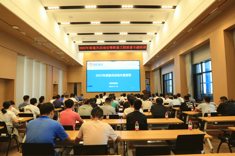 2022年9月19日,為積極響應(yīng)集團(tuán)公司關(guān)于實施質(zhì)量強市戰(zhàn)略的工作要求,提高公司項目一線員工參與質(zhì)量管理的積極性,切實提升質(zhì)量管理水平,博宏建設(shè)集團(tuán)開展以“推動質(zhì)量變革創(chuàng)新,促進(jìn)質(zhì)量強國建設(shè)”為主題的2022年質(zhì)量月啟動會暨樁基工程質(zhì)量專題培訓(xùn)會,項目經(jīng)理、技術(shù)負(fù)責(zé)人、生產(chǎn)經(jīng)理、質(zhì)檢員等崗位員工參加了本次會議。