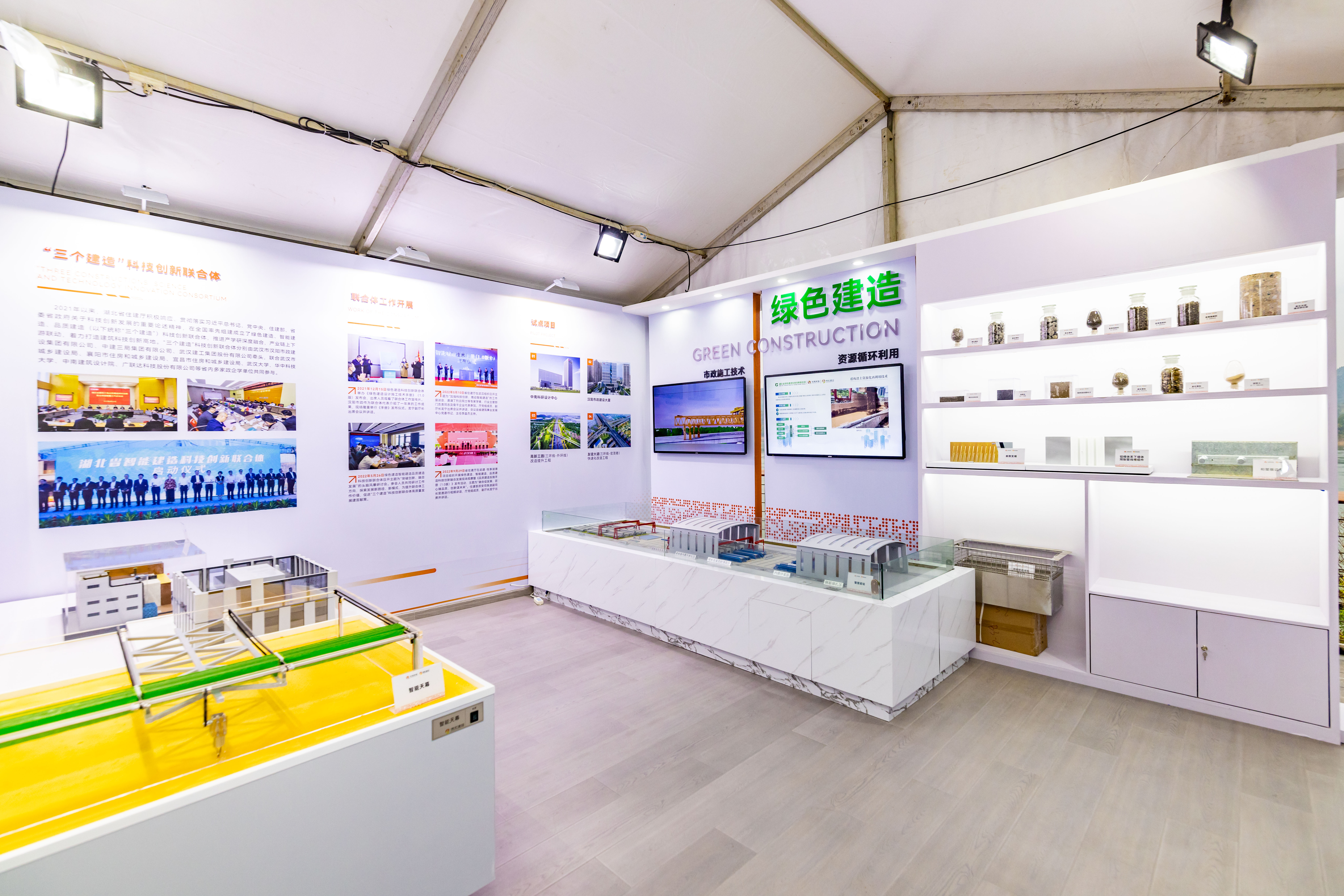 綠色建造區(qū)展示了公司先進(jìn)的市政施工技術(shù)和資源循環(huán)利用工藝,其中廢舊瀝青混合料和建筑固廢再利用等技術(shù)可以提高資源利用效率,助力創(chuàng)建綠色宜居環(huán)境。