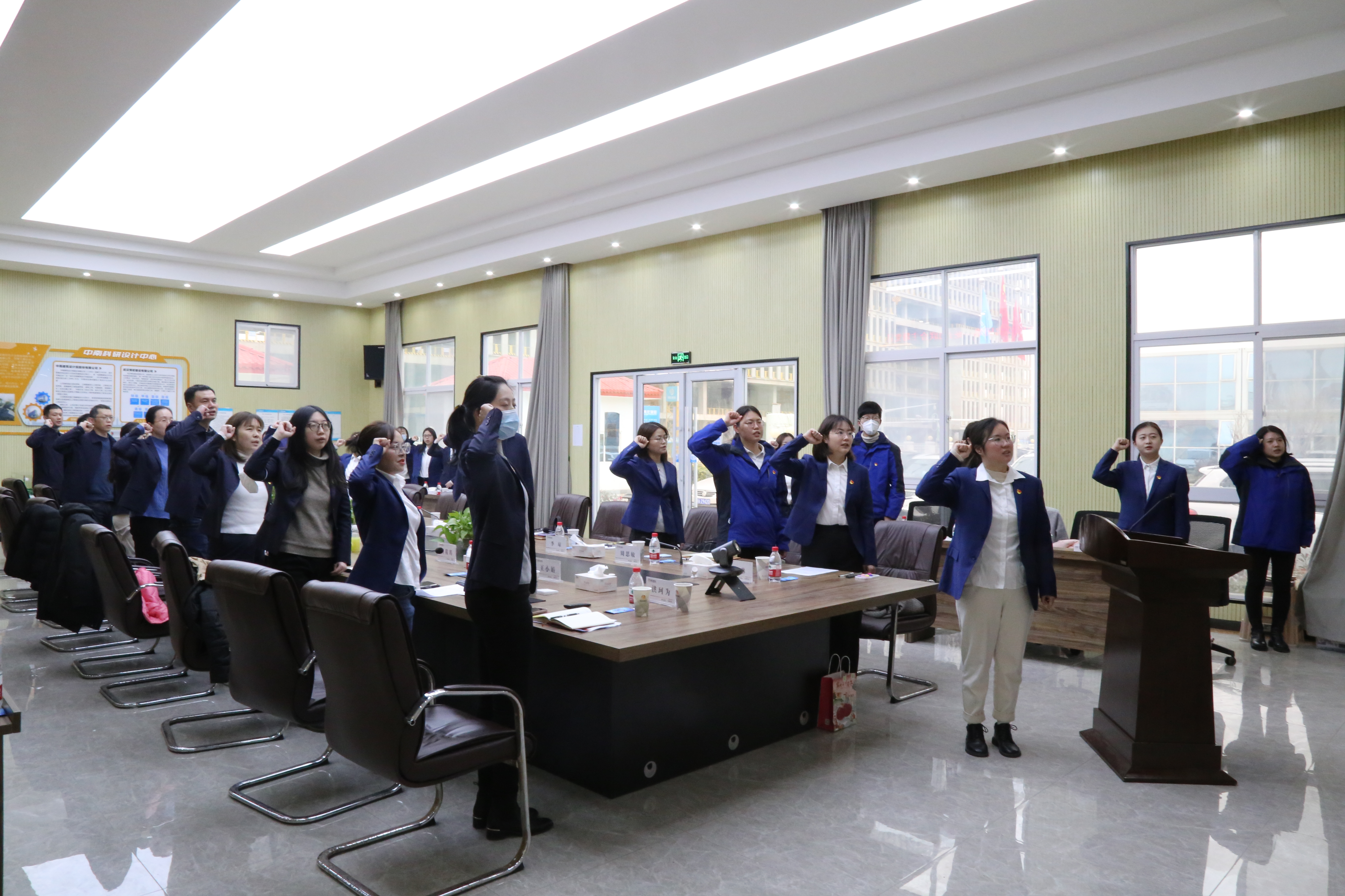 黨員王小娟從現(xiàn)場(chǎng)亮點(diǎn)展示、工程業(yè)績(jī)展示、2023年重大節(jié)點(diǎn)項(xiàng)目展示三個(gè)維度出發(fā),講述了近年來(lái)公司所取得的斐然業(yè)績(jī)。風(fēng)勁帆滿圖新志,砥礪奮進(jìn)正當(dāng)時(shí),開工以來(lái),博宏人正以斗志昂揚(yáng)的姿態(tài)加速推進(jìn)年后復(fù)工復(fù)產(chǎn)工作,正如鏗鏘有力的開工誓詞中所說(shuō):我們將深推精益建造,踐行完美履約,不忘初心、繼續(xù)前行,精誠(chéng)協(xié)作、攜手共贏,狠抓工程進(jìn)度,確保質(zhì)量安全,用拼的姿態(tài)、搶的意識(shí)、爭(zhēng)的勁頭,力爭(zhēng)開門紅、確保全年紅!