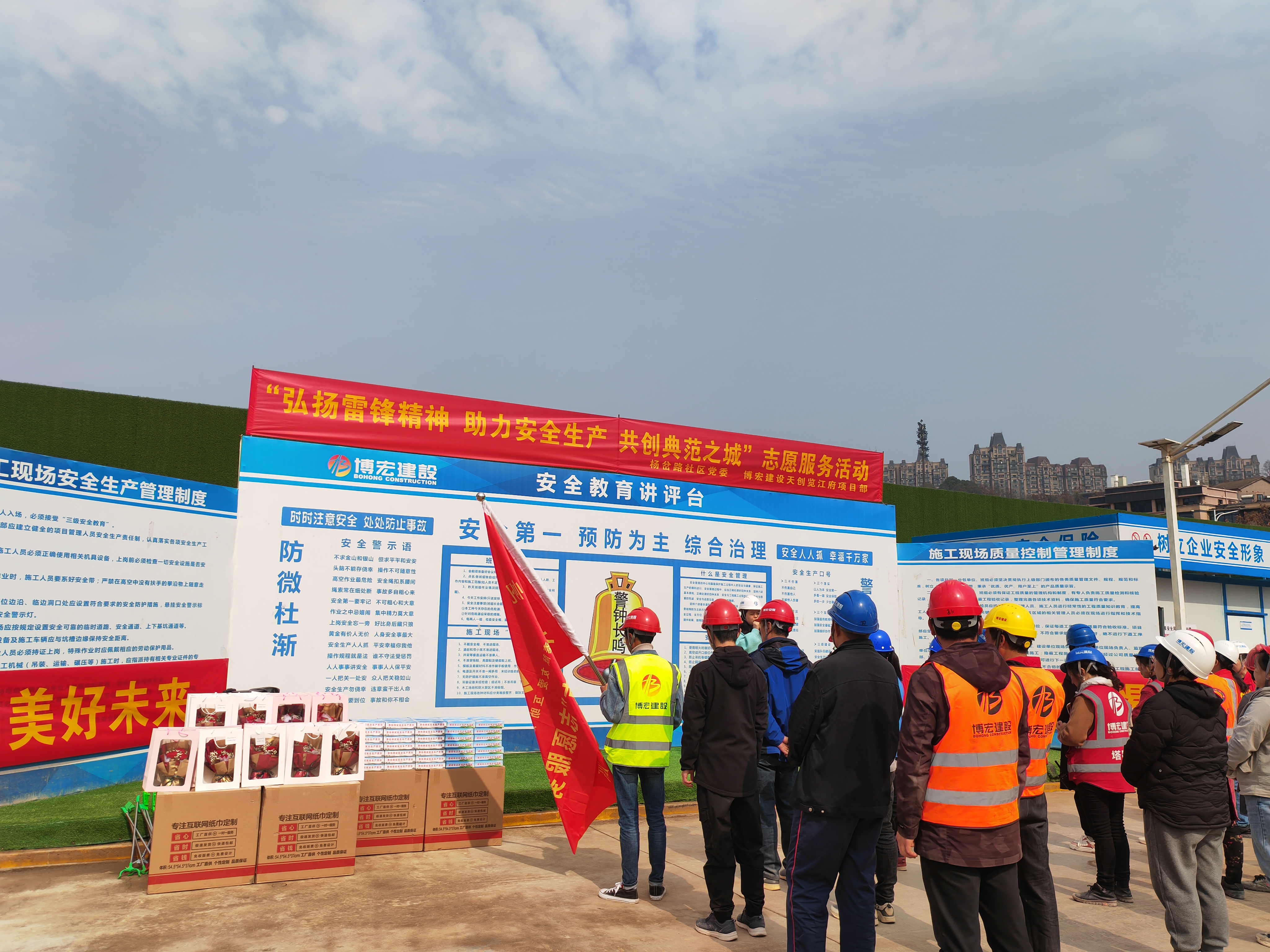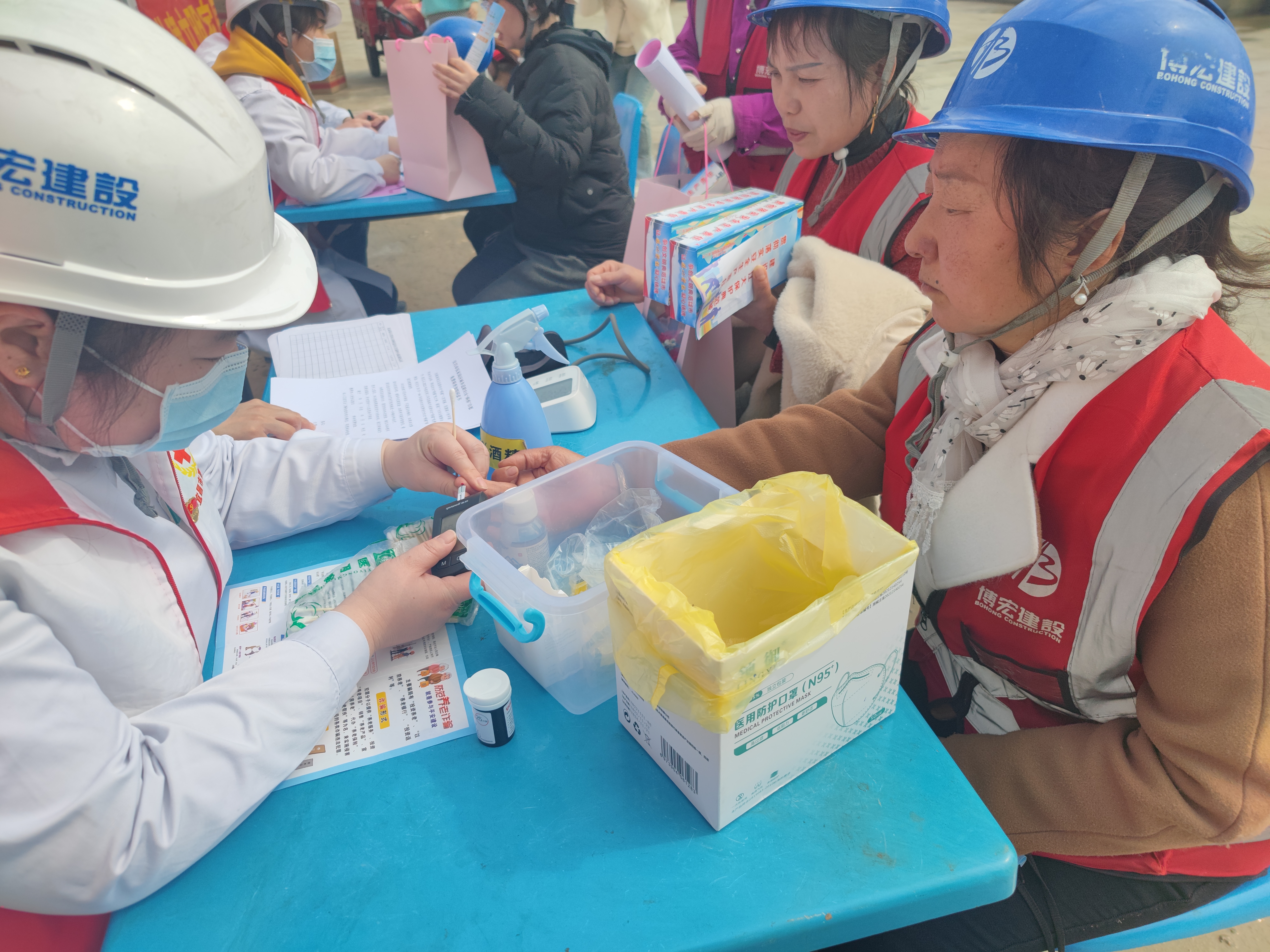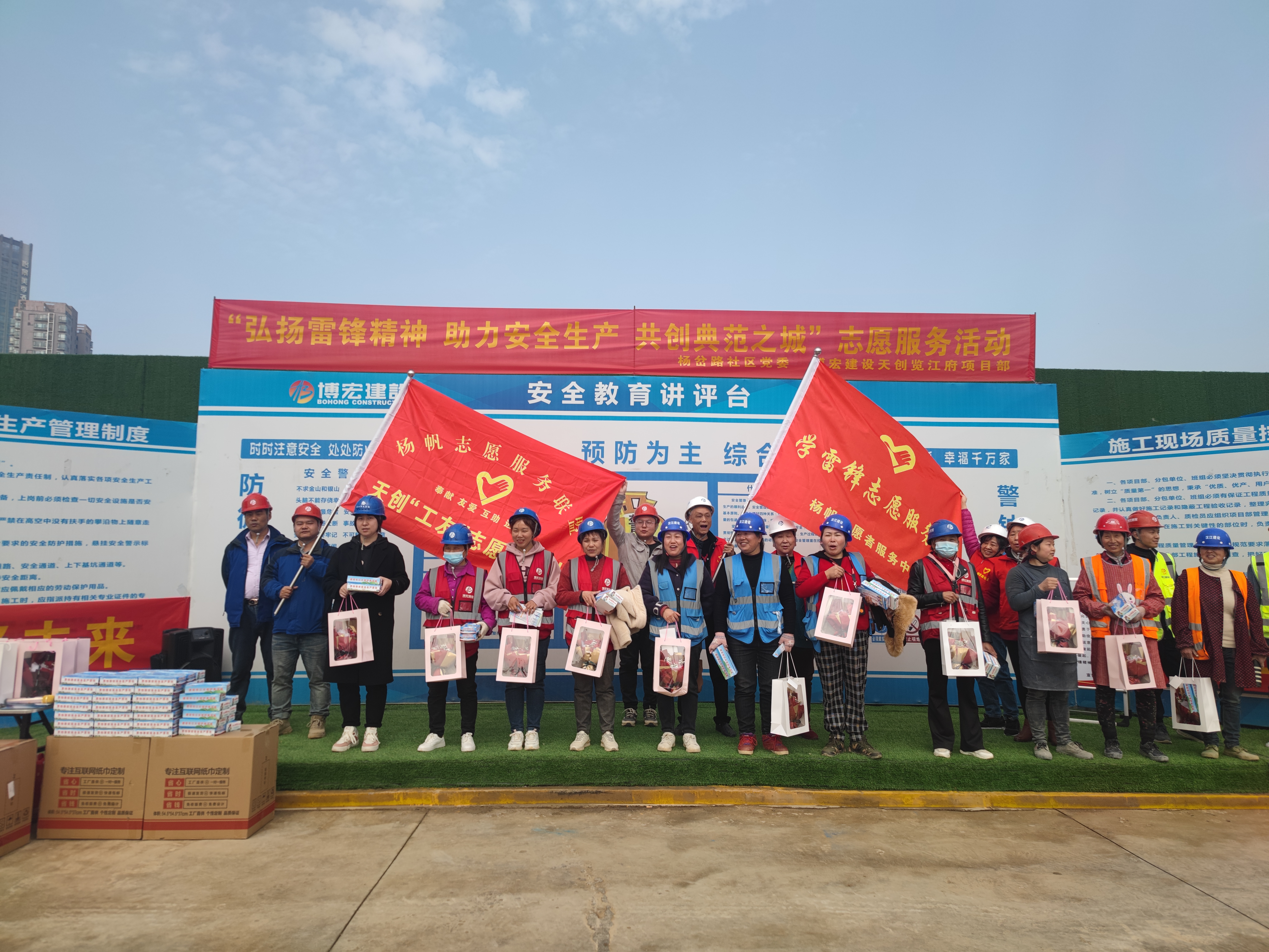 在第60個“學雷鋒紀念日”和“三八”女神節(jié)來臨之際,博宏建設集團天創(chuàng)覽江府項目部聯(lián)合楊岔路社區(qū)黨委、楊帆志愿者服務中心開展“弘揚雷鋒精神,助力安全生產(chǎn),共創(chuàng)典范之城”主題志愿服務活動,為堅守在項目一線辛勤耕耘的城市建設者們提供多種多樣的便民服務及健康義診,30余名職工代表、農(nóng)民工代表、社區(qū)“守心”醫(yī)療志愿者參加活動。