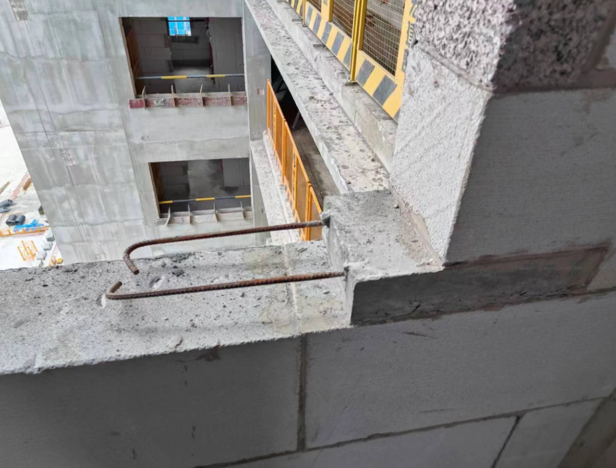 為保證各工序穿插施工的正常運(yùn)行,在進(jìn)行外墻砌體穿插施工時(shí),常規(guī)外墻砌體施工工序?yàn)橄绕鲋链芭_(tái)位置,待支模澆筑窗臺(tái)壓頂完成并拆模后才可以繼續(xù)砌體砌筑至頂。因主體結(jié)構(gòu)每層施工時(shí)間較短,如按正常工序依次施工,無(wú)法滿足外墻砌體、外抹灰工序的穿插施工要求,且工人砌體施工時(shí)易在壓頂位置留缺口,直接向上砌筑至頂,形成工序倒置,留下窗臺(tái)壓頂后澆筑的滲漏隱患。