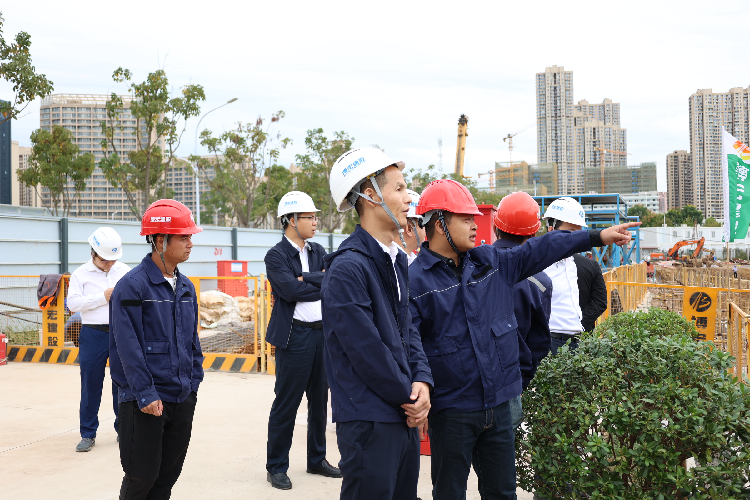 為切實做好國慶節(jié)日期間安全生產工作,保障公司在建項目的平穩(wěn)推進。10月1日,博宏建設集團黨委書記、董事長、總經理鄒勇帶領黨委委員、總助一行,前往公司十個重點在建項目調研安全生產工作。